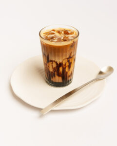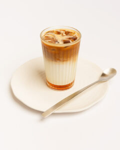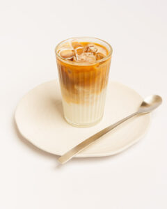 اسپرسو دوپیو به همراه شیر و یخ (کارامل، وانیل، فندق، نارگیل، آیریش)