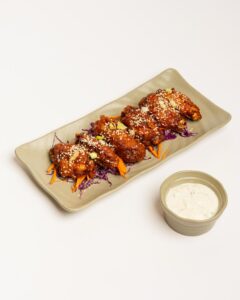 ۶عدد بال مرغ سرخ شده،سس بوفالو،سالاد کلم ،دیپ زاتزیکی