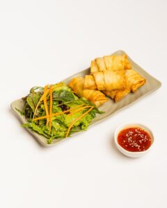 ۵ عدد اسپرینگ رول(گوشت پولدبیف،قارچ،فلفل دلمه،پنیر،سالاد،سس چیلی تای)