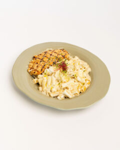 پاستا فرمی،سس خامه ای اسموکی،مرغ سوخاری ،پنیر پارمزان