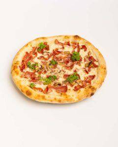 سس خامه؛ پنیر پیتزا،بیکن گوساله، قارچ