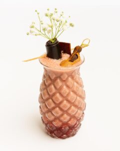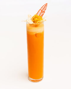 ترکیبی از آب هویج و آب سیب زرد طبیعی به همراه میوه آناناس و سیروپ دست ساز زنجبیل