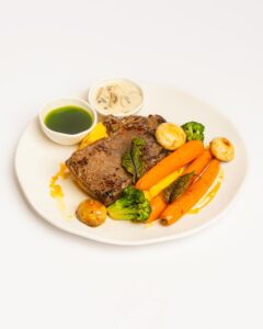 پوره سیب زمینی، ۳۰۰ گرم راسته گوساله بی استخوان،دورچین سبزیجات، سس قارچ ، سس آنتراکت