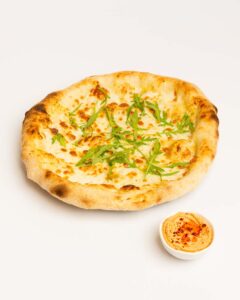 خمیر پیتزا، پنیر پیتزا، سس سیر، پنیر مزه دار شده
